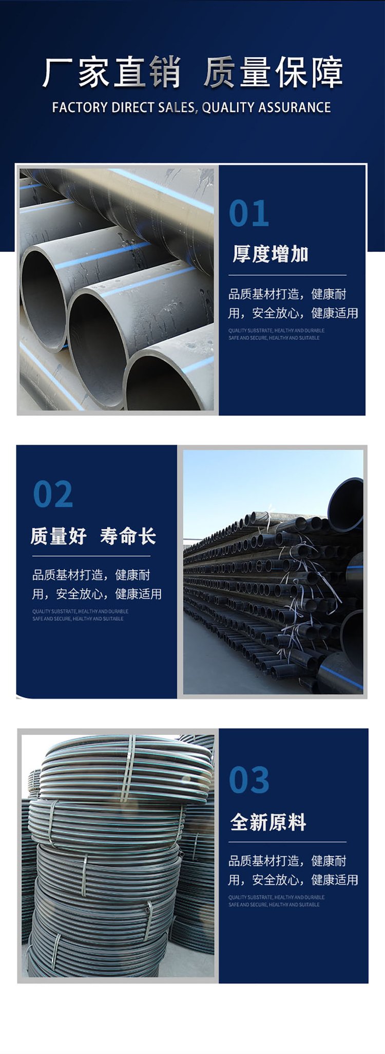 PE管材又稱聚乙烯管材,具有耐腐蝕、重量輕、安裝簡便、不易結垢等特點,通常用于給水、排水和化工管道。PE管材可分為低密度聚乙烯(LDPE)、高密度聚乙烯(HDPE)和線型低密度聚乙烯(LLDPE)等幾種,其中HDPE在建筑給水領域應用較為廣泛。